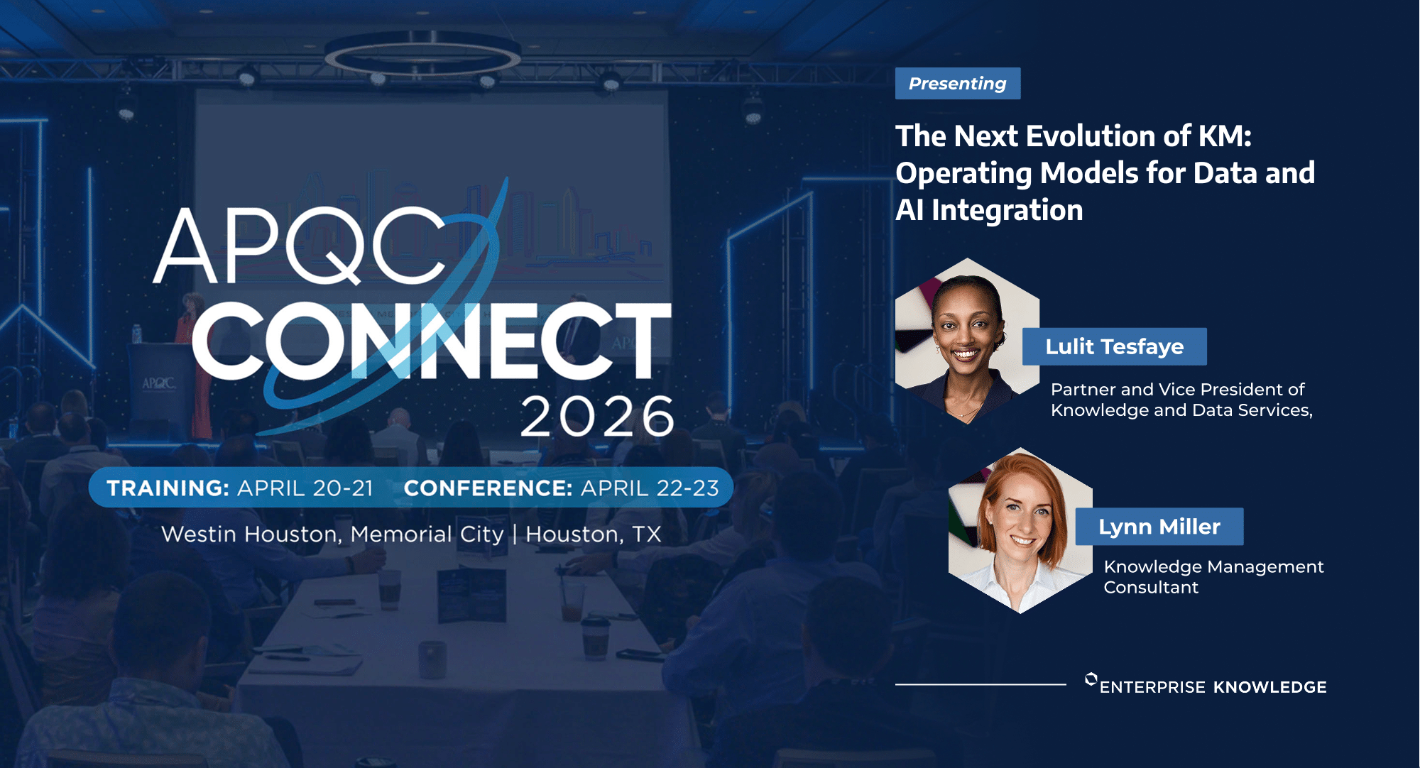 Lulit Tesfaye, Partner and Vice President of Knowledge and Data Services, and Lynn Miller, Knowledge Management Consultant, will present “The Next Evolution of KM: Operating Models for Data and AI Integration” at the APQC 2026 Process & Knowledge Management Conference on April 22nd in Houston, Texas.